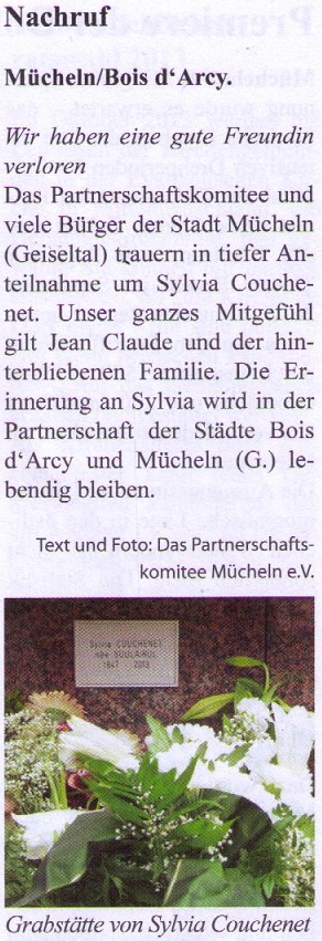 - Nachruf Sylvia Couchenet, Geiseltal Echo, Mai 2013
